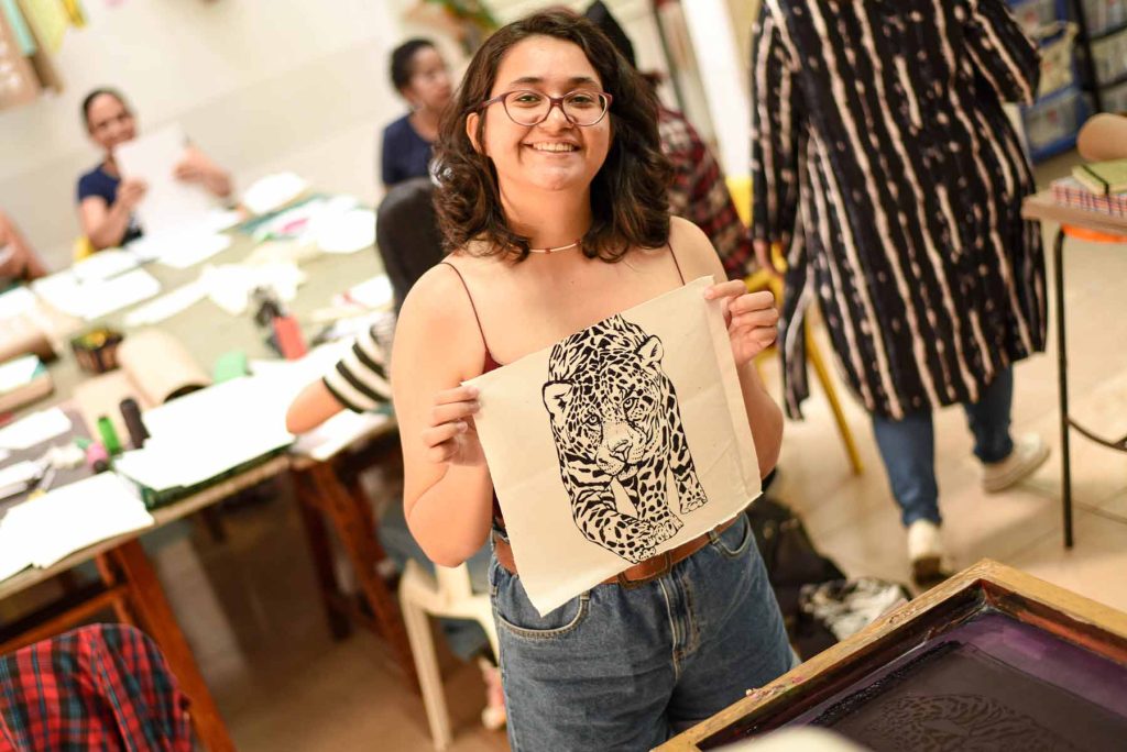 Te enseñaremos el arte de la encuadernación para la creación de obras únicas aplicando técnicas artesanales. En este taller fusión aprenderás a diseñar y estampar tela y papel, con esa mismas estampas forramos portadas y guardas para luego encuadernar y personalizar libretas o sketchbooks únicas y hechas por ti.
